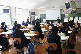金沢美術工芸大学教授 桑村佐和子先生をお招きして、美術講演会を行いました。講演は「美術学習の意義と求められる創造力のある人材とは」という演題で、美術の学習をすることでどんな力がつくのか、それは将来どのように活かされるのか、また、変化の激しい現代社会で求められる創造力ある人とは、などについて美術専攻生全員がお話を聴きました。途中、金沢美大や美大生のユニークな行事やエピソードなどの紹介もあり、楽しく、かつ意義深い講演会でした。