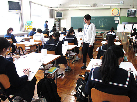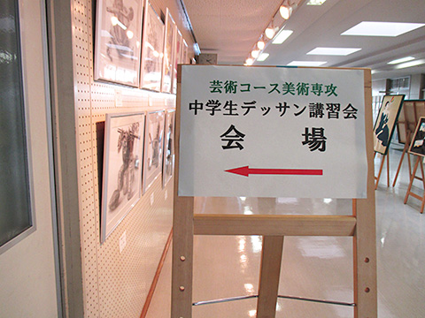 本校の美術専攻3年生がデモンストレーターとして中学生と同時に実際にデッサンを描いたり、講師として本校卒の美大生も指導にあたるなど、参加した中学生にとって有意義な講習会となったようです。
