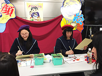 犀川公民館主催の行事「第38回犀川地区文化祭」にて、本校美術専攻生徒が似顔絵を描きました。