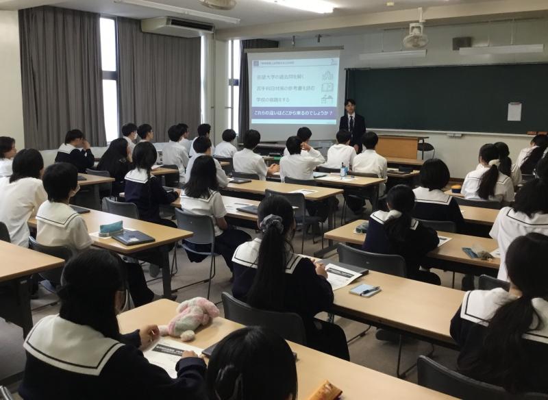 ベネッセから講師の先生をお招きし、3学年進学希望者に向けた進学説明会を実施しました。講師の先生はご自身の経験を踏まえ、受験勉強のポイントとして(1)本気で目指したい目標を設定すること、(2)希望進路に近づくための正しい努力の方法、そして(3)限られた時間の計画的な活用について、分かり易く説明をしてくださいました。生徒たちは終始熱心に聞き入っており、これから訪れる勝負の夏に向け、気持ちを引き締めたようでした。