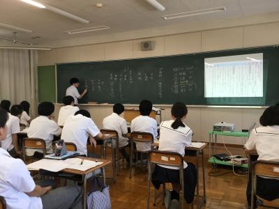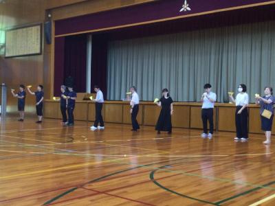 連日、気温が高いため、本日の行事のうち、非行防止教室・全国大会出場者紹介・終業式はリモートで行いました。便利な時代になったものです。