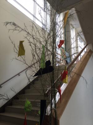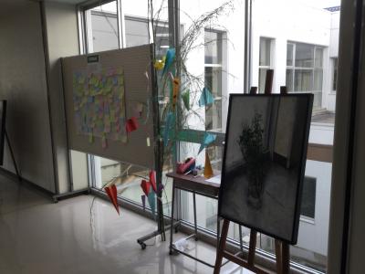 飛ばし終わった紙飛行機は、過ぎてしまいましたが七夕と近いということで、願いを込めて笹につるしました。