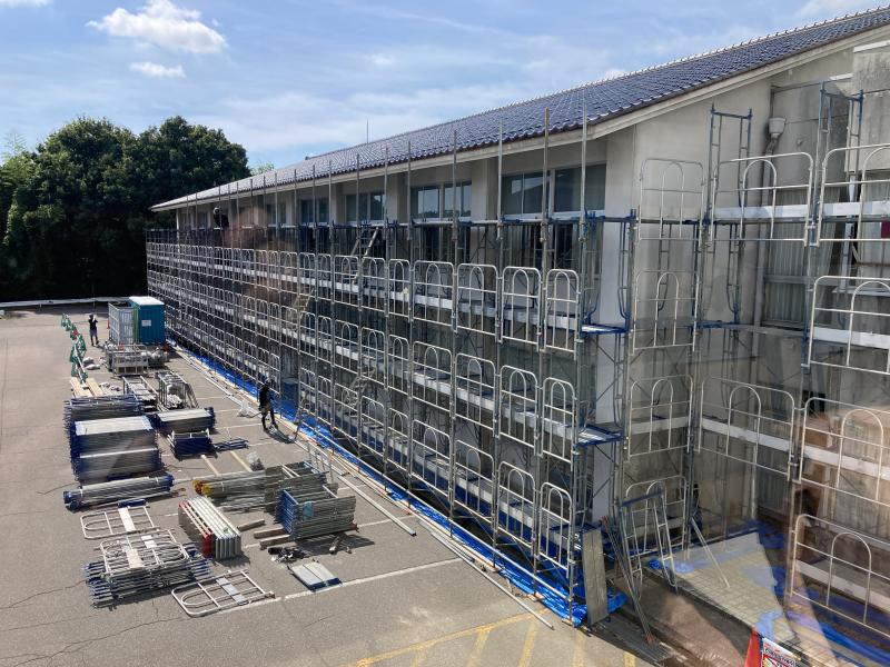 校舎の一部で建物のリニューアル工事が始まりました。炎天下に作業されている方々お疲れ様です。