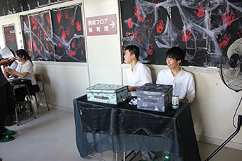 Tatsumigaoka High School had many activities at the school festival. The 22nd homeroom did a haunted house. The students used a cloak, mask, and costumes. Many people wore face paint and camouflage. One boy and one girl wore makeup. They had the haunted house on Friday and Saturday. They did the haunted house to make people scared. Students, teachers, and guests went to the haunted house. There were 1st year, 2nd year, and 3rd year students participating. Mr. Sengoku helped with the haunted house. The haunted house was very fun, but it was not better than last year’s school festival.