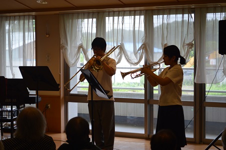 7月8日(金) 午後、特別養護老人ホーム戸室和楽 ホームを音楽専攻の生徒で訪問いたしました。今回も生徒が中心となり企画、選曲、練習をしての訪問です。