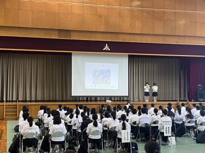 天候には恵まれたものの、暑さがつづいている中での体験入学となりました。全体会では学校長が辰巳丘高校の素敵なところについて説明し魅力をアピールされました。つづいて音楽専攻生徒によるウェルカムコンサート、生徒会生徒による学校紹介をおこない、普通コース、芸術コースに分かれてのそれぞれの体験に臨みました。昨年度から参加中学生と本校在校生との交流する機会を多くとるようにしたので、参加人数は昨年よりも増加しましたがアットホームな雰囲気の中で実施することができました。