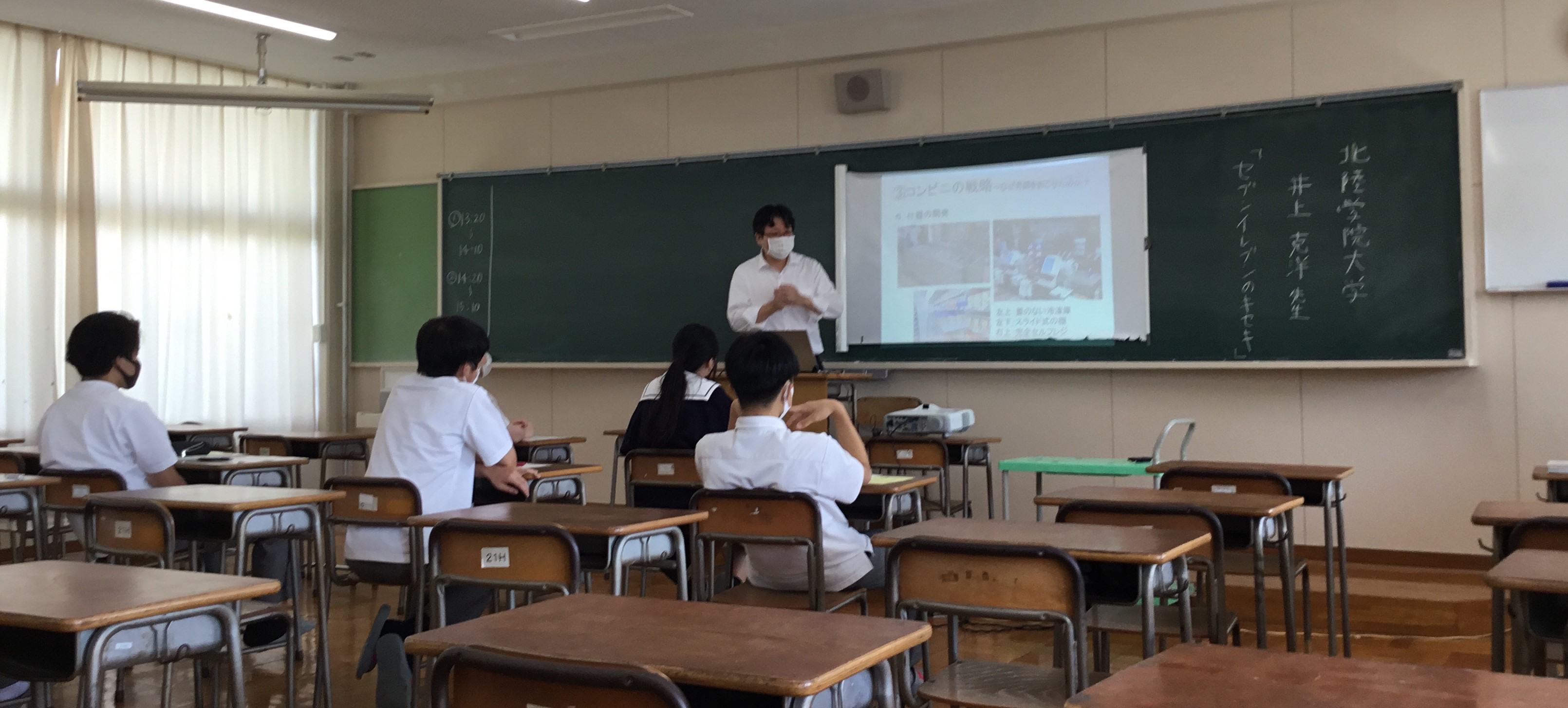 大学の先生方による模擬授業が行われました! 投稿日時 : 2021/07/26 しゅんらん100 7月26日(月)13時20分から2時間にわたり、2、3年生の進学希望者に対して、近隣の大学の先生方による模擬授業が行われました。北陸学院大学、北陸大学、金沢学院大学、金沢美術工芸大学から15名の先生方がいらっしゃいました。内容は経済学、保育・幼児教育学、外国語学、情報学、心理学、芸術(日本画・彫刻・油絵・デザイン)と多岐にわたりました。大学の先生の直接の講義とあって、生徒たちはときどきメモをとりながら、真剣に耳を傾けていました。 Tweet