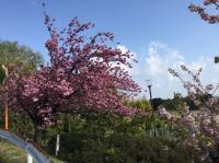 週が明けた月曜日、春らしい明るい日差しがとても心地よい朝です。辰巳丘高校に上ってくる道沿いには、桜の木が何本か植えられています。開校したときから数年間、卒業生の記念植樹として植えられた桜の木です。これらの木々は、同じ桜でも種類が異なるため、開花の時期も少しずつずれていて、今は「カンザン」という種類の木が満開になって美しいピンクの花をつけています。先代の皆さんのおかげで、4月半ば過ぎまで桜を楽しむことが出来るのです。