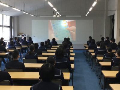 下の写真、授業のようにも見えますが、実は3年生の進学希望者に向けた奨学金の説明会の様子です。日本学生支援機構の奨学金の申請の仕方などについて説明されました。参加した生徒の皆さんは、真剣に話を聞いていました。お金の問題で自分の希望する進路を諦めるとというのはとても残念だと思います。この制度も含め、ご家庭でも是非進路のこと、お金のことについて話し合ってみてください。