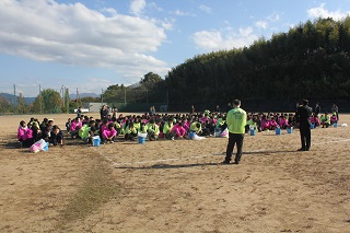 出発前に校長の訓辞を聞く生徒達