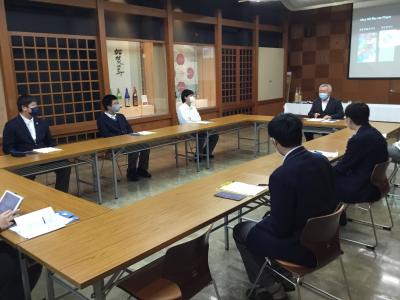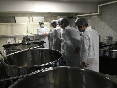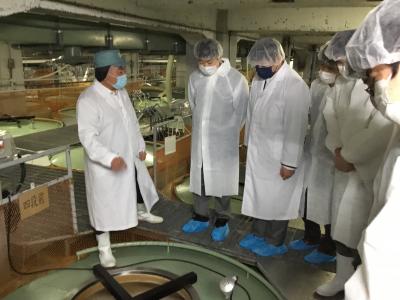 まず、生産本部副本部長の正司さんから、お酒について、福光屋という会社について、いろいろと教えていたただきました。次に、正司さんは酒蔵を案内しながら、酒造りの工程を丁寧に説明してくれました。