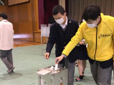 1月20日(木)7限目に「選挙出前講座」が行われました。実際の選挙の流れを楽しみながら体験することができました。よりよい社会づくりのために選挙の意義を考える良い機会となりました。石川県選挙管理委員ならびに金沢市選挙管理委員の方々、寒い中ご指導いただきありがとうございました。