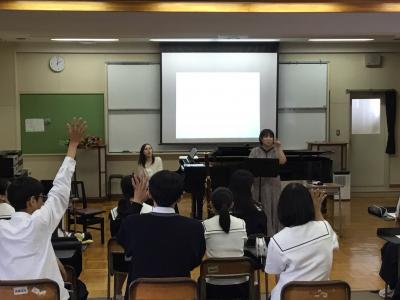 7月12日(金)、音楽専攻生は、本校卒業生である水本芳枝さんと本校芸術コース音楽非常勤講師である平野加奈さんによる特別講座に参加しました。ファゴットとピアノの溶け込むような音色が心地よく、心温まる優雅な時間となりました。また、水本さんのファゴット奏者として現在に至るまでの苦労や楽器や練習との向き合い方をお聞きすることができ、努力は裏切らないと強く感じる瞬間でした。