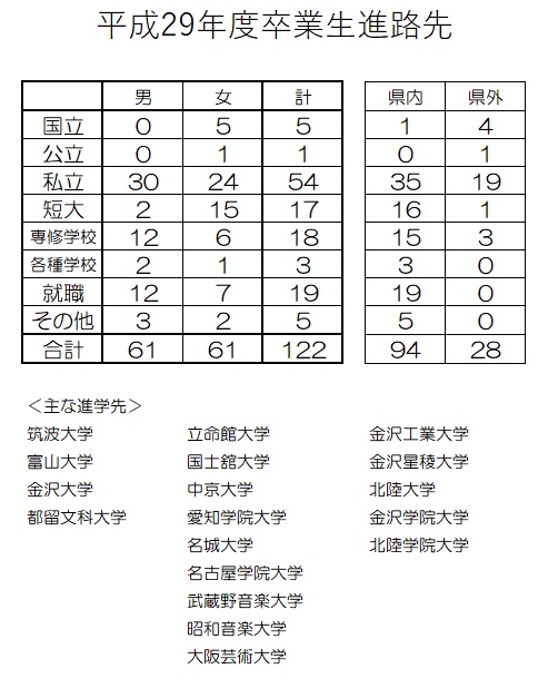 県外の4年制私立大学へ進学した生徒が増加しました。