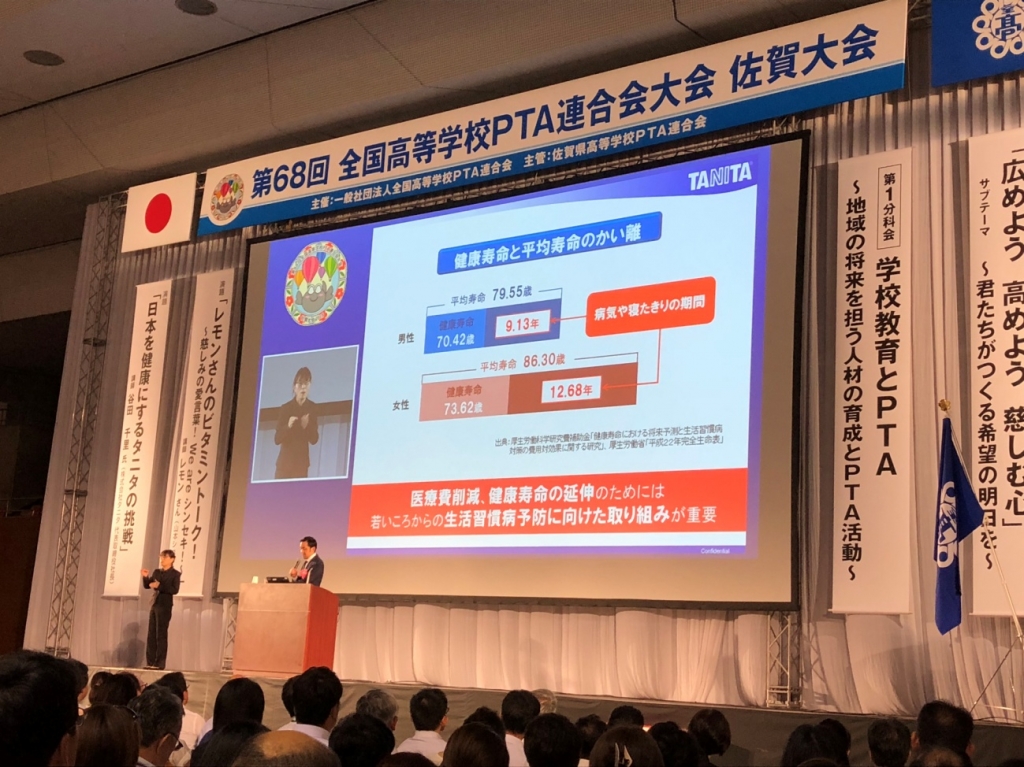 大会2日目は、佐賀県総合体育館(メイン会場)で記念講演を聴きました。講師は学生時代を佐賀で過ごしたタニタの現社長でした。会社として単に利益を生むだけではなく社会に対してどんな貢献ができるのかを考えることで、とても働きがいのある職場環境を作ることができたという話はとても説得力がありました。また、やろうとしていることに対して協賛者を募る工夫も必要不可欠であり、今後は情報の上手な活用がますます見込まれると思いました。この2日間で得た情報を今後のPTA活動に生かしていきたいと思います。