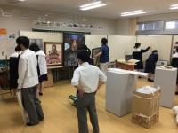 その第一弾は、野々市市立布水中学校で開催できることとなり、7月1日(水)、本校の生徒と職員が作品の搬入、展示を行いました。教室を一つお借りして、数多くの作品を並べます。みんなで協力して、1時間ほどで作業を終えることができました。