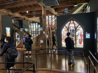 芸術コースは小樽芸術村の鑑賞を行いました。小樽芸術村、別名似鳥芸術村はニトリグループが開設した施設で、たくさんのステンドグラスや日本画、油絵、木彫のなどを鑑賞することができました。どれも名品ばかりで生徒はいつも以上に集中して鑑賞していました。