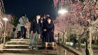 満開のしだれ桜と壮大なイルミネーションを楽しみました。水占いや展望で楽しむ姿をたくさん見ることができました。