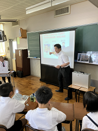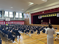 6年生は様々な職業についておられる地域の方をお招きして、ご自分の職業について語っていただきました。「この職業についたわけ」「この職業の苦労や工夫、そしてやりがい」「どんな目標、夢をもっているか」「能美市や社会にどのように貢献したいか」などの話を聞いて、「職業」や「自分の進路」について考えを深める機会としました。