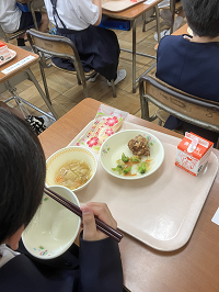 2年生が給食センターに見学に行きました。給食センターでは安全のために細心の注意を払いながら「おいしいと喜んでほしい」「たくさん食べて元気でいてほしい」と願いを込めて日々の給食を作ってくれていることがわかりました。安心でおいしい給食が当たり前のように食べられることに感謝です。