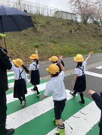 自分の安全を自分で守る力は大切です。特に飛び出しによる交通事故を絶対に起こしてはいけません。この日の歩き方教室では、左右の安全を確かめてから横断歩道を渡るということを一人一人が実際に確かめながら学びました。