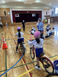 中学校進学に向けて能美署と交通推進体のご協力のもと、6年生自転車教室を行いました。特に自転車運転中の安全確認の仕方を丁寧に教えていただきました。自分の命は自分で守るという意識と実践力を高めていきたいものです。