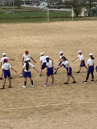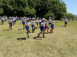 体育の時間に「自分のペースで最後まであきらめずに走る」ことをねらいに持久走に取り組んでいます。各学年で行われる持久走認定会では、グランドを一定時間(低学年:3分、中学年:4分、高学年6分)走り、その間に何周走れたかにチャレンジします。自分に合ったペースで長い時間を走り切る気持ちよさや満足感を味わい、持久走好きの子が増えてほしいと願っています。