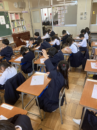 書き初めには、「おめでたい言葉や詩歌、または今年一年の目標や抱負を書くことで行動を新たにする」という意味があります。みんな(1,2年生は硬筆。3~6年生は習字)集中して心を込めて書いていました。