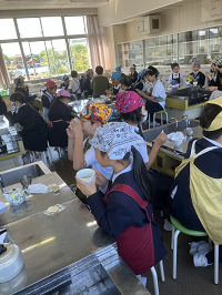 6年生は収穫した大根を材料にエコクッキングに挑戦しました。目的は無駄なく大根を使い切りできるかぎり捨てる部分を出さないこと。皮も葉も大切に料理するエコクッキングを通してフードロスについて学びました。