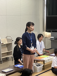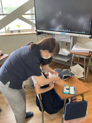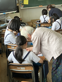 ボランティア団体であるチーム20のご協力で、車いす体験、アイマスク体験を行いました。この体験を通して、障害を抱える人が感じる苦労や、サポートする人が気をつけたい留意点などを考えました。