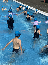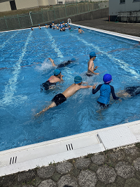 6月10日にプール開きを行いました。まだ冷たく感じる水に子どもたちの歓声が響いています。安全を第一に気を付けながら、まずは水に慣れ、そして泳力をつけていきましょう。