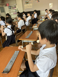 3年生から音楽の授業でリコーダーの学習がスタートします。この日は楽器屋さんに来ていただき、リコーダーの扱い方や音の出し方の基本を教えてもらいました。まずは、みんなでリコーダー合奏ができることをめざし、がんばって練習していきましょう。