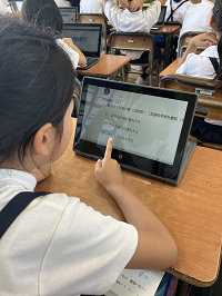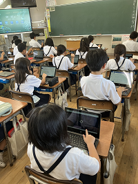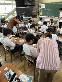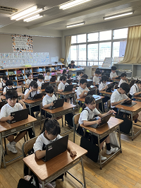 本校は、2024年度リーディングDXスクールに指定され、ICT機器の有効活用に関する研究に取り組んでおり、11月28 日にその成果の一端を発表するための授業公開(4クラス)を行いました。県外から参加された先生をはじめ多くの先生方に授業を見ていただき、特に「子供たちの学びに向かう姿勢がすばらしい」とたくさんお褒めの言葉をいただきました。