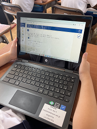 CBTとは「Computer Based Testing」の略称で、コンピューターを使用したテストのことです。これまでテストといえば紙ベースのものでしたが、これからはCBTもどんどん導入されていく時代になるだろうという流れもあり、3年生~6年生ではじめて実施しました。今後は多様なテスト形式にしっかりと対応できる力も必要となってきます。
