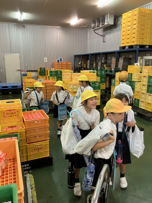 社会科「お店で働く人」の勉強でアルビスに見学に行きました。バックヤードにまで案内いただいた見学や説明、お店の人へのインタビューを通して、スーパーマーケットの工夫や苦労をたくさん知ることができました。