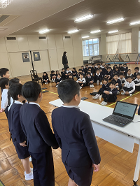 辰口中2年生の代表が来て中学校説明会「辰中へ行こう」を開いてくれました。プレゼンを使いながら授業のこと、行事のこと、部活動のことなどをわかりやすく説明してくれただけでなく、6年生が不安に思っていることに丁寧に答えてくれました。中学校への進学がますます身近に、そして楽しみになってきましたね。