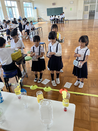 2年生は生活科で手作りのおもちゃを製作し、1年生を招待してのおもちゃランドを企画、実行するという学習を行いました。工夫とアイディアいっぱいのおもちゃランドに招待された1年生は大喜び。2年生は運営者としてがんばり、その責任感と主体性あふれる姿に、この1年の成長の大きさを感じさせました。