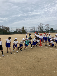 体育の時間に「自分のペースで最後まであきらめずに走る」ことをねらいに持久走に取り組んでいます。各学年で行われる持久走認定会では、グランドを一定時間(低学年:3分、中学年:4分、高学年6分)走り、その間に何周走れたかにチャレンジします。自分に合ったペースで長い時間を走り切る気持ちよさや満足感を味わい、持久走好きの子が増えてほしいと願っています。
