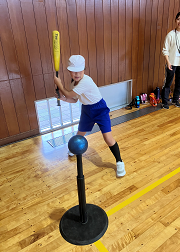 Tボールはベースボール型のニュースポーツです。打ったり投げたり捕ったりという技能の習得と共に、「全員が楽しくゲームができる」ことをめあてに自分たちでルールを決めながら楽しんでいます。