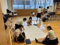 用具や審判、放送などの委員会ごとに集まり、仕事内容を確認したり仕事分担を行ったりしました。団旗係は下書きを始め、団リーダーは団パフォーマンスで行うよさこいやダンスの練習を行っていました。どの委員会でも一人ひとりが積極的に話し合いに参加したり、練習に取り組んだりしている姿が素敵でした。