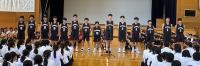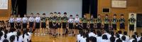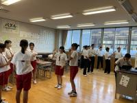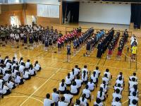 団ごとに集まり、団役員の挨拶や団のスローガンの紹介をはじめ、3年生から運動会に対する熱い思いが語られました。その後は声出しを行ったり円陣を組んだりして団の士気を高める団や、親睦を深めるためにじゃんけん列車を行う団など、それぞれが工夫した結団式となりました。