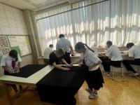 学校運営協議会を通じて、地域の方々に支援に来ていただき、アイロンがけやミシンのサポートをしていただいています。