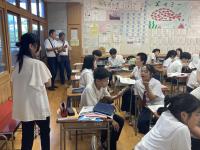 5限目の授業や校内の様子を参観し、辰口中の取り組みについて懇談しました。
