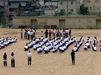 明日の相撲大会に向けて、2年生は学年全員で、1年生は校長室で激励会を行いました。