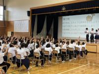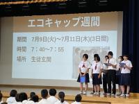 生徒会の執行部からは今月の心のテーマや意見箱の設置、エコキャップ週間、辰口クリーンプロジェクトのお知らせがありました。美化委員会は清掃用具の正しい使い方などをクイズを交えてみんなで楽しく確認しました。