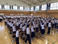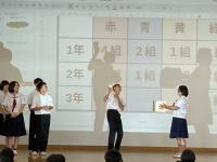 団抽選会の最後には、各団の団長のかけ声に合わせて、全校生徒が声を出し、運動会に向けて気持ちを高めることができました。