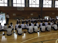 10月月例集会 投稿日時 : 2018/10/05 管理者 10月3日(水)、月例集会がありました。今回は、新人大会や石川県少年の主張大会、社会体育の全国大会入賞など多くの表彰がありました。校長講話は、楽しい学校の3つ目は「しっかり学ぶ学校」であることやノーベル賞を受賞した本庶祐氏の話題、生徒指導からは、授業ベルスタート、身だしなみについて、生徒会からは、新執行部あいさつと10月の目標についての話がありました。校歌をもっと元気よく歌えるといいなと思いました。次に期待です。