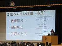 井出市長をはじめ、学校運営協議会の方など来賓のみなさまも見守る中、8人の生徒がこれまでの学習の成果を発表しました。