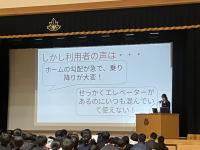 12月4日~10日の人権週間に合わせて、北陸先端科学技術大学院大学(JAIST)の元山琴菜先生をお招きし、1年生が「人権集会」を行いました。