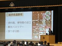 事前に準備したスライドを使い、辰口中学校に関するクイズや学校行事の紹介を行ったあと、技術の授業で作成した部活動紹介動画を流しました。